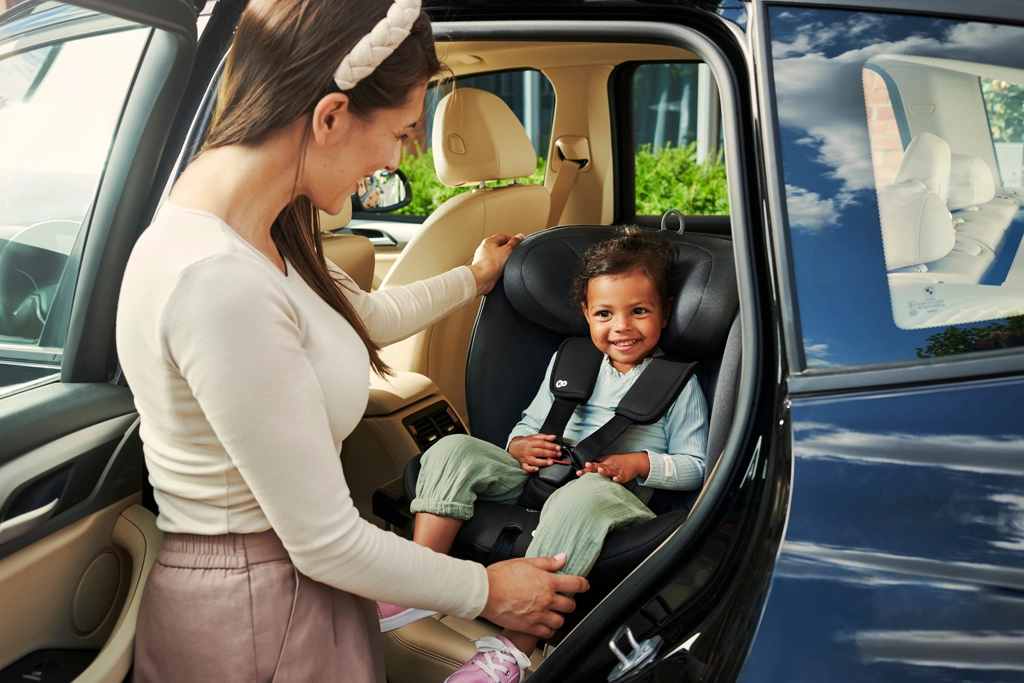 Le mécanisme pivotant permet d’orienter le siège vers vous en un instant, d’attacher l’enfant en toute sécurité et de passer du RWF au FWF sans retirer le siège de la voiture.