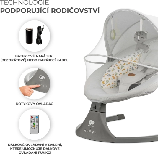Le transat Kinderkraft LUMI combine technologies modernes et design sécurisé pour un endormissement confortable de la naissance jusqu’à 9 kg. Grâce au bercement latéral, bébé se sent comme dans les bras, tandis que le moteur silencieux ne perturbe pas le sommeil. Avec la connectivité Bluetooth et l’entrée USB, diffusez facilement les berceuses préférées directement depuis votre téléphone.