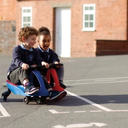 Didicar est un engin ingénieux qui se déplace grâce à une simple rotation de son guidon solide – sans besoin de batteries ni d’entretien compliqué. Tournez le guidon vers l’avant pour avancer, puis orientez-le vers l’arrière pour reculer. Il fonctionne au mieux sur des surfaces dures et lisses, en intérieur comme en extérieur, idéalement sur l’asphalte ou le béton.