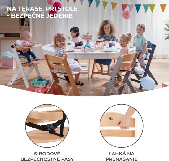 Kinderkraft Enock est une chaise haute intemporelle que vous pouvez aisément convertir en chaise ergonomique pour enfant plus âgé. Grâce au dossier réglable sur cinq positions, au repose-pieds ajustable et à l’assise large, elle s’adapte parfaitement à l’âge et à la taille de l’enfant. Le hêtre massif et le contreplaqué de qualité garantissent une stabilité exceptionnelle et une longue durabilité.
