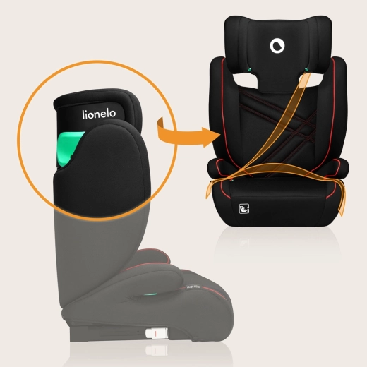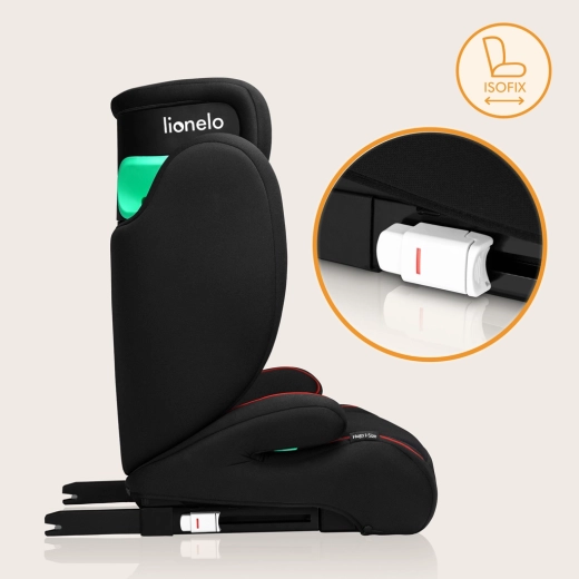 Siège auto Lionelo Hugo i-Size sûr et confortable pour enfants mesurant 100–150 cm (env. 4–12 ans), conforme à la stricte norme R129/i‑Size. Il offre ISOFIX ou une installation uniquement avec la ceinture de sécurité, une protection latérale avancée, un appui-tête renforcé avec mousse à mémoire de forme, 8 positions de réglage et un revêtement facilement amovible et lavable pour un confort maximal et une utilisation durable.