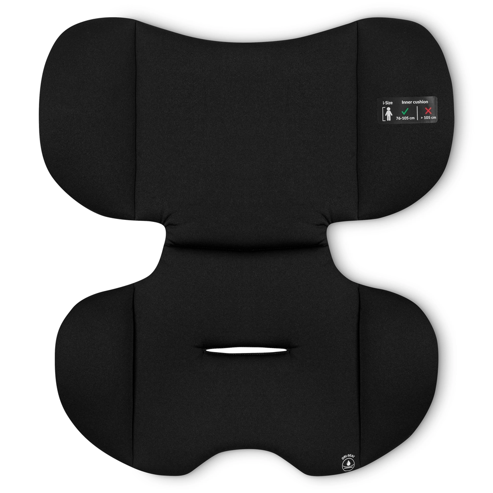 Le siège se monte face à la route (FWF). Pour une taille de 76–105 cm, l’enfant est maintenu par le harnais 5 points du siège conjointement avec les ceintures du véhicule ; pour une taille de 100–150 cm, seules les ceintures de la voiture sont utilisées. l’appuie-tête à 10 positions et la large assise avec mousse EPE souple offrent du confort même sur les longs trajets. Le réducteur Dri-Seat favorise une position correcte des plus petits et améliore la respirabilité.