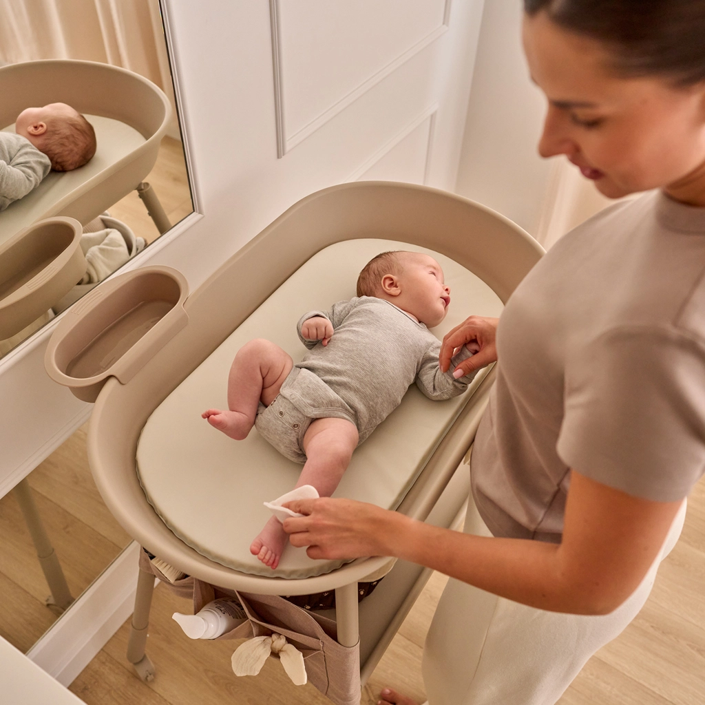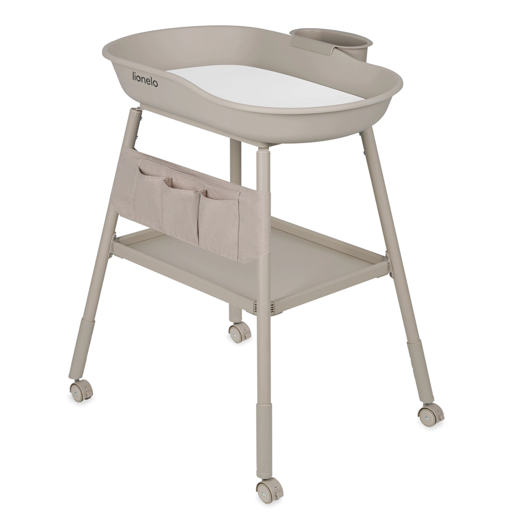 La pratique table à langer Lionelo Rosie en teinte Beige Sand combine des bords surélevés sécurisés, une mobilité aisée grâce à 4 roulettes avec freins et de larges espaces de rangement. Elle comprend un matelas en mousse avec housse imperméable, une hauteur de pieds réglable pour des soins ergonomiques, un organisateur en tissu avec 5 compartiments et un plateau latéral amovible pour les cosmétiques ou l’eau. Sa structure en acier stable assure sûreté et confort lors du change quotidien.