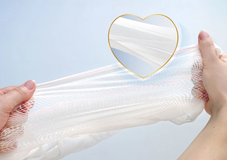 Un matériau léger et aéré assure une ventilation optimale et un séchage rapide, pour une sensation de fraîcheur même lors d’un port prolongé pendant le post-partum.