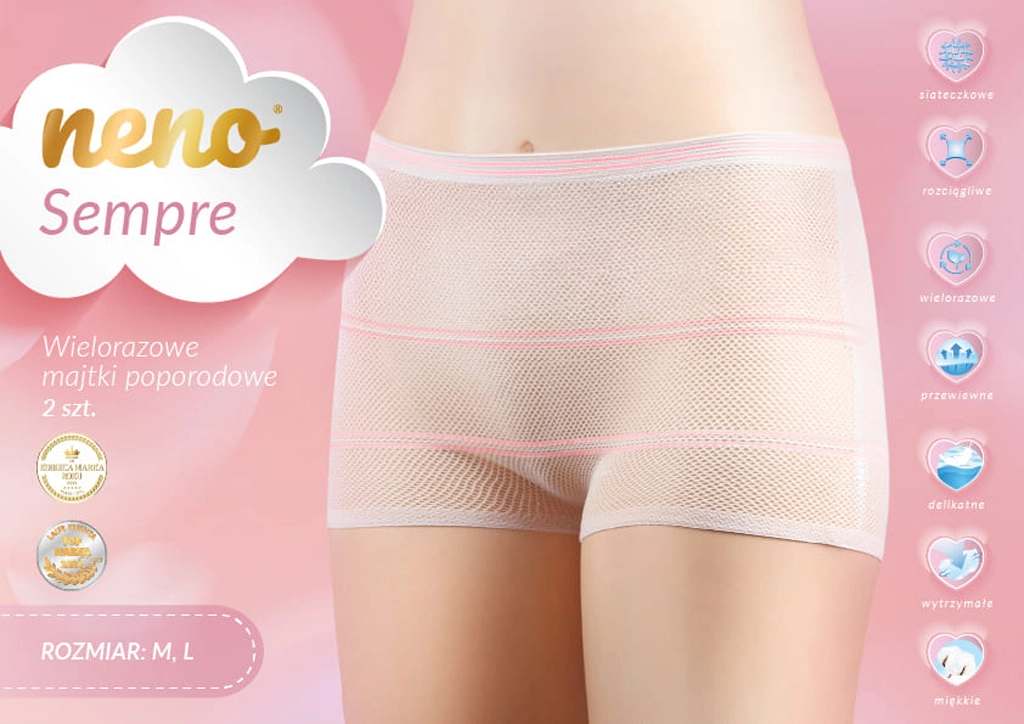 Vous recherchez assurance et confort après l’accouchement ? Les culottes post-partum Neno Sempre, en blanc universel avec de délicats détails roses, offrent un léger maintien du ventre, une ventilation optimale grâce à la maille et un frottement minimal grâce à la conception sans coutures. Idéales avec des protections post-partum, elles aident à maintenir l’hygiène tout au long de la journée.