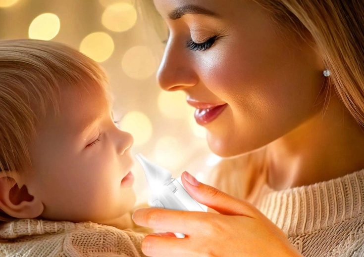 Aspirez même pendant le sommeil grâce à un niveau sonore ≤65 dB. Le rétroéclairage LED facilite le ciblage et les mélodies avec bruit blanc aident à calmer le bébé.