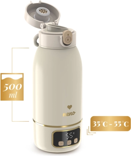 Voyagez l’esprit tranquille avec le chauffe-biberon portable Neno Savia, qui réchauffe rapidement le lait ou l’eau, maintient une température constante de 35 à 55 °C et permet jusqu’à 8 cycles de chauffe par charge. Grâce à ses dimensions compactes, son fonctionnement sans fil, son bouchon étanche et sa capacité de 500 ml, il est idéal pour les sorties, la poussette et même l’avion.