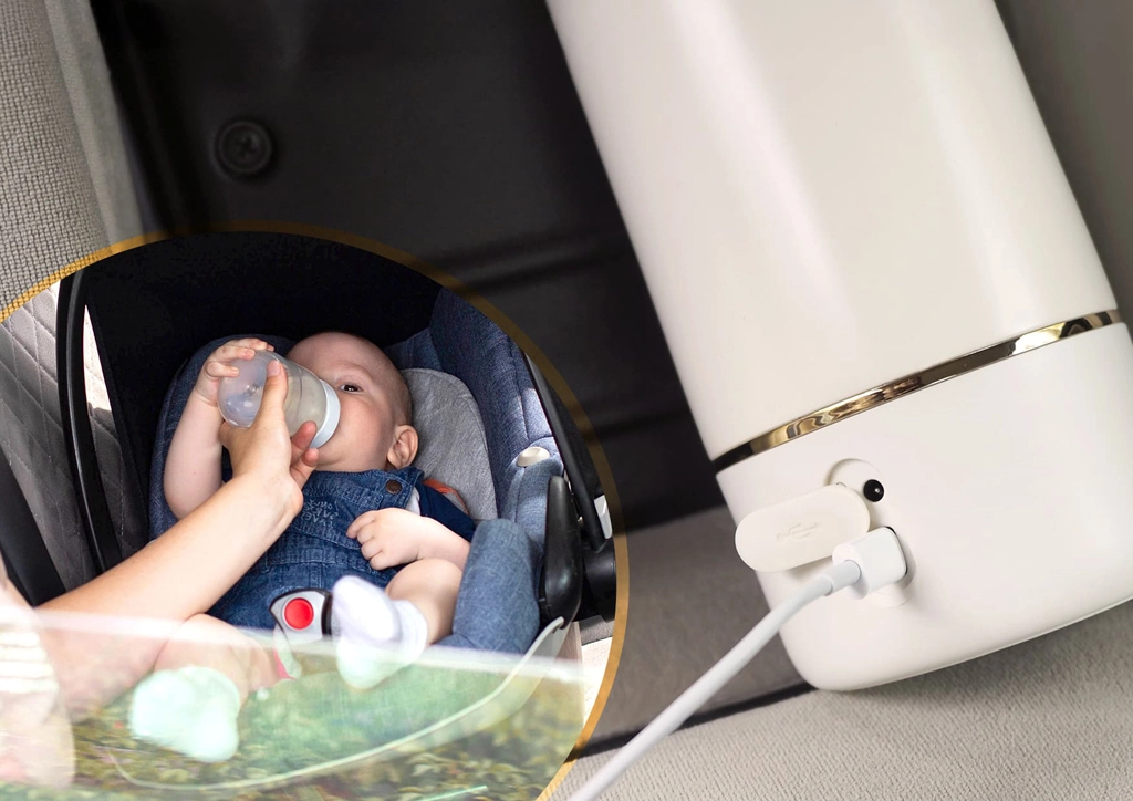 L’appareil chargé permet jusqu’à 8 cycles de chauffe, sans prise nécessaire, pour préparer le lait de bébé à tout moment et en tout lieu.