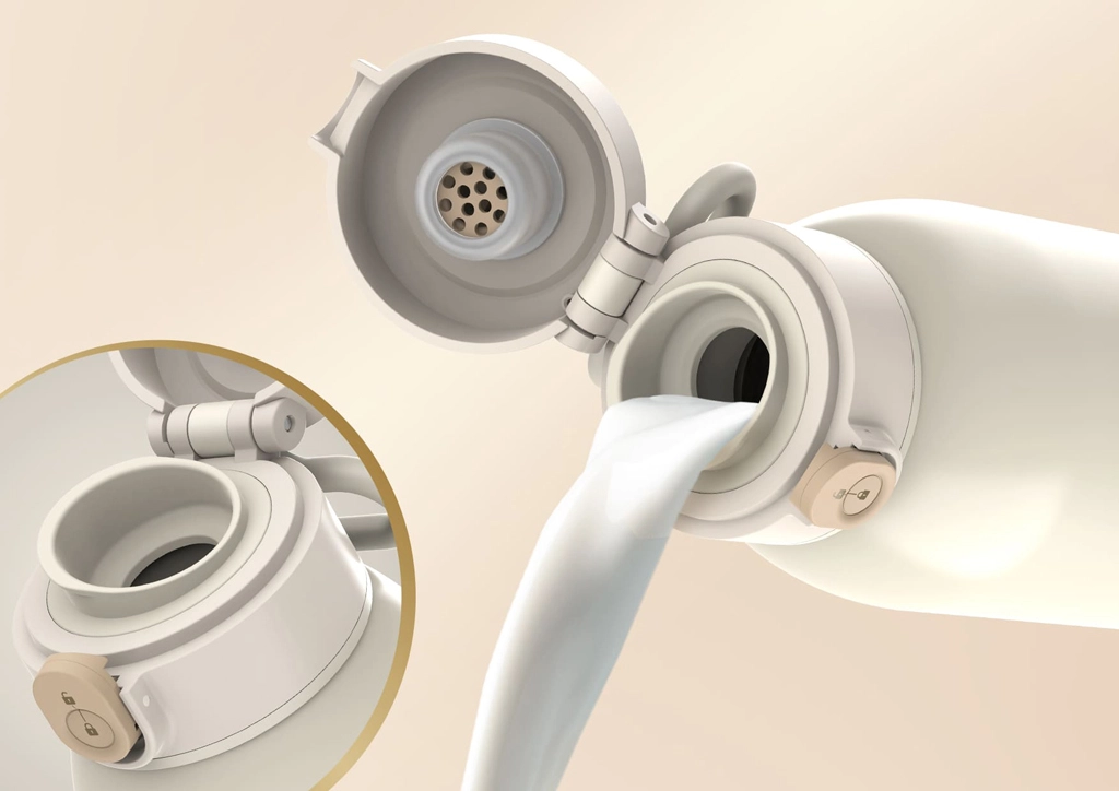 - Utilisation sûre – couvercle étanche, verrou du bouton, versement précis.