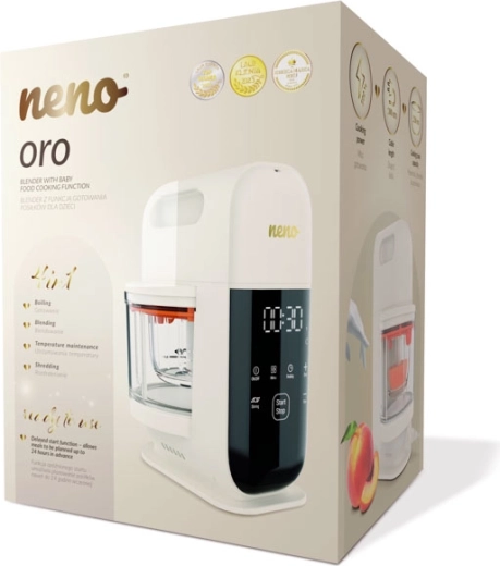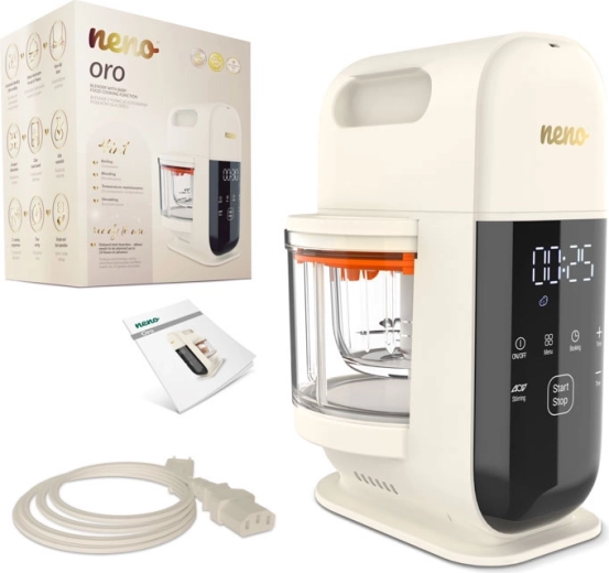 L’appareil multifonction Neno Oro facilite la préparation des repas faits maison pour bébé. Il combine la cuisson à la vapeur et le mixage automatique, propose jusqu’à 11 programmes intelligents, un démarrage différé et le maintien au chaud jusqu’à 9 heures. Compact, sûr (sans BPA) et doté d’un panneau tactile intuitif, il fait gagner du temps et épargne la vaisselle.