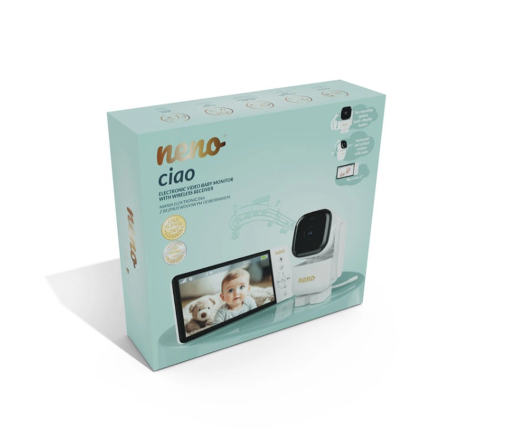 Le babyphone vidéo intelligent Neno Ciao vous apporte la tranquillité grâce à son écran couleur 5", sa caméra rotative Pan & Tilt (355°/90°), sa vision nocturne, sa communication bidirectionnelle et sa technologie VOX pour économiser l’énergie. L’émetteur offre une portée jusqu’à 300 m, un capteur de température, 8 berceuses apaisantes et une autonomie du récepteur jusqu’à 12 heures avec une batterie intégrée de 5000 mAh.