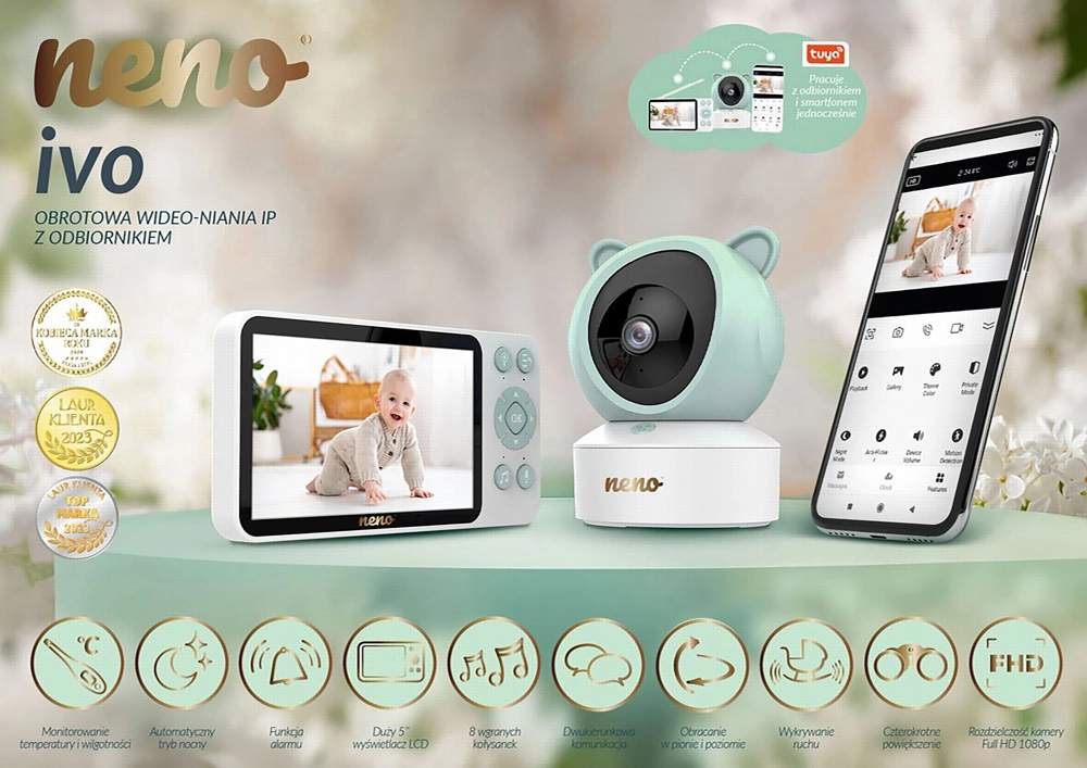 Protégez le sommeil paisible de votre bébé avec le babyphone vidéo NENO Ivo – une combinaison d’une caméra Full HD motorisée et d’un écran LCD 5" pour une vue d’ensemble cristalline à la maison comme à distance via l’application. Il offre un contrôle Pan&Tilt, une vision nocturne, la détection de mouvement et de son, une communication bidirectionnelle, 8 berceuses et des capteurs de température et d’humidité. Grâce à sa longue portée, son support flexible et l’option d’enregistrement sur microSD, vous l’adaptez facilement à toute chambre d’enfant.