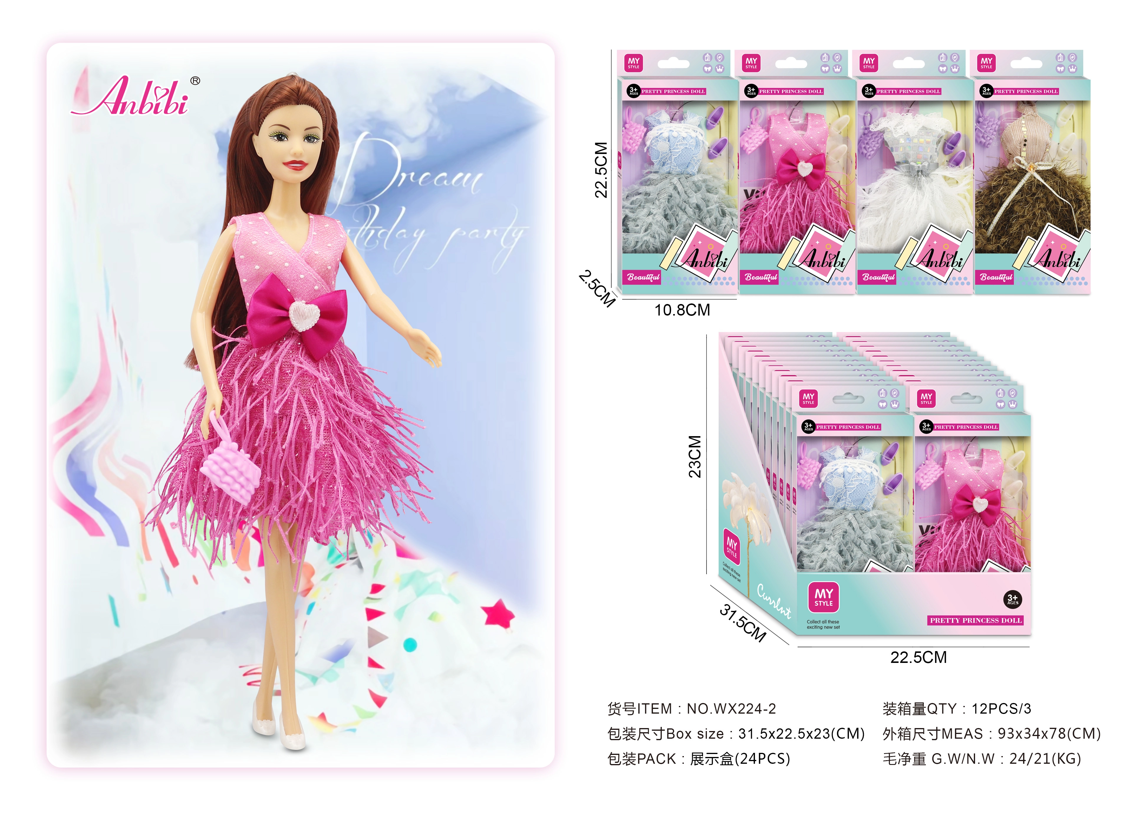 Remarque : L’emballage comprend uniquement la robe, la poupée n’est pas incluse.