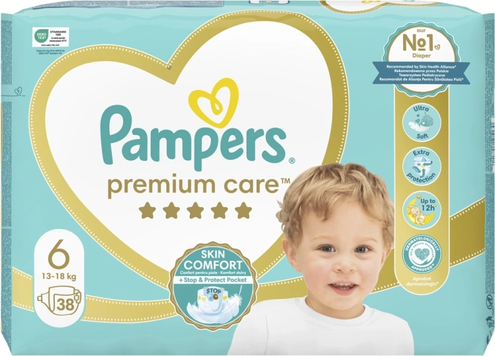 Pampers Premium Care couches pour bébés taille 6 (13 kg+) 38 pièces