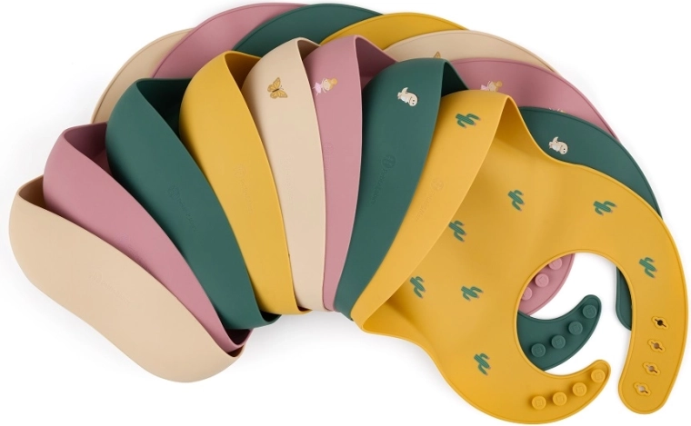 Grâce aux quatre positions de fermeture, le bavoir « grandit » avec l’enfant et convient parfaitement dès 6 mois. Le matériau est un silicone alimentaire 100 % sans BPA : facile à entretenir, il se nettoie rapidement et passe au lave-vaisselle. En déplacement, vous apprécierez de pouvoir simplement l’enrouler et le glisser dans le sac.