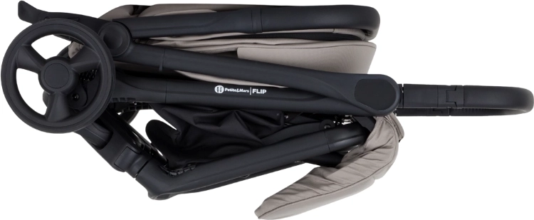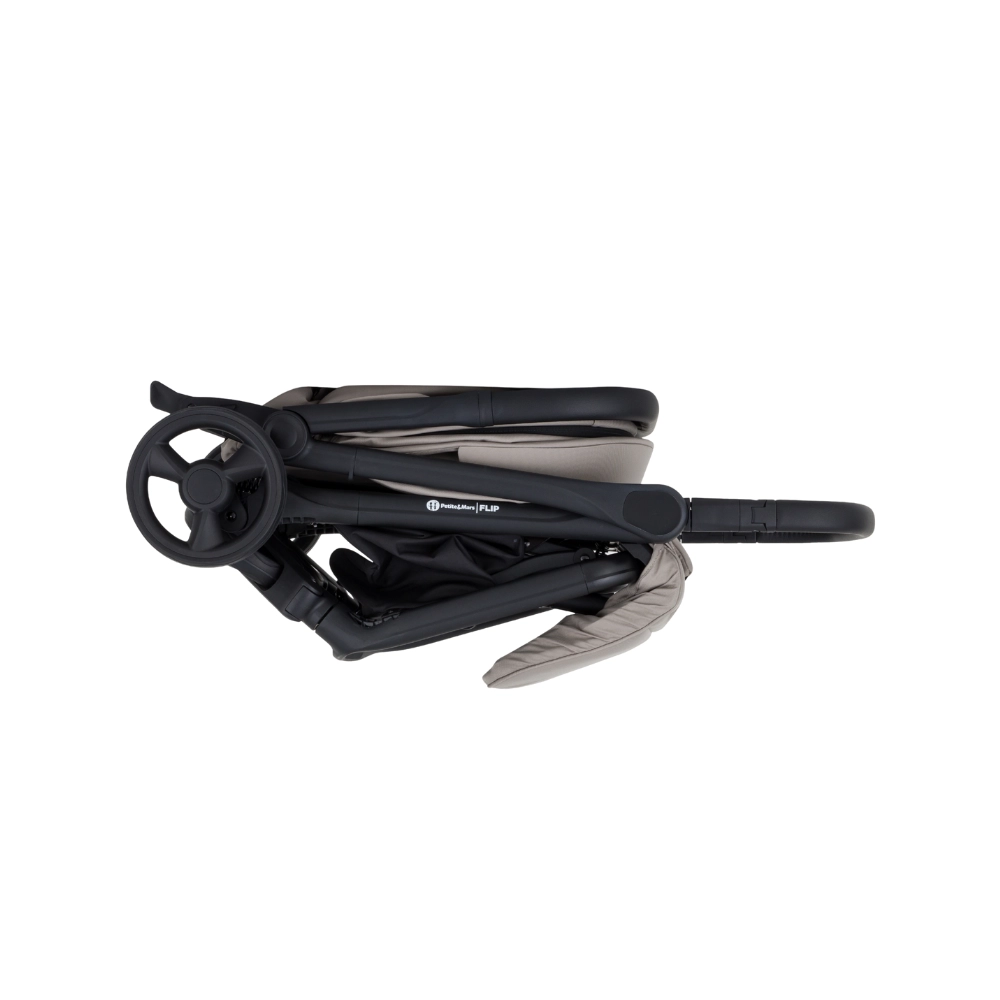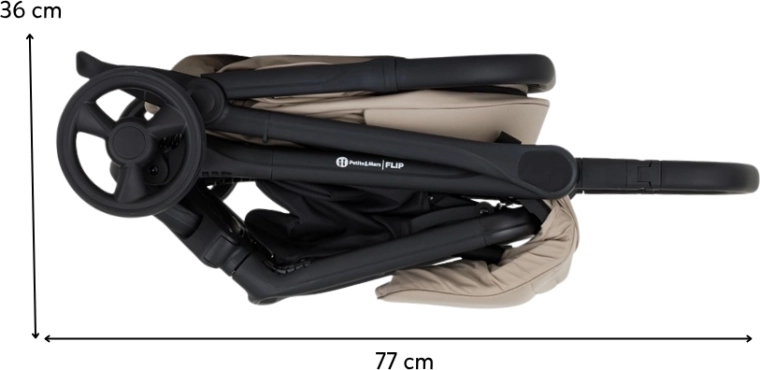 Petite&Mars Flip Tan Beige est le compagnon pratique des aventures quotidiennes. Vous apprécierez ses dimensions compactes, son poids plume de 8,2 kg et le pliage rapide d’une seule main, qui facilite les déplacements en voiture, en train et en avion. Le châssis noir élégant, les housses matelassées et les détails en cuir écologique soulignent le look moderne de la poussette.