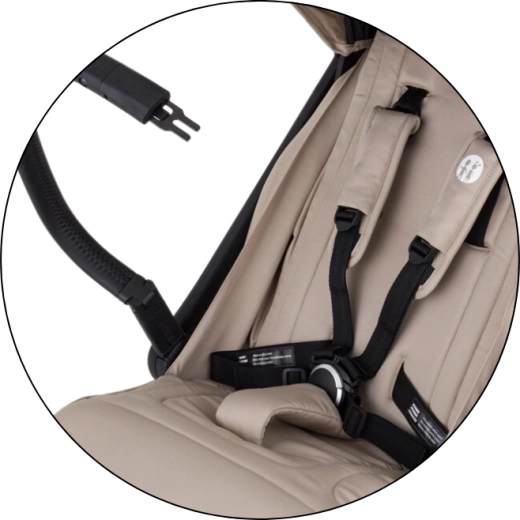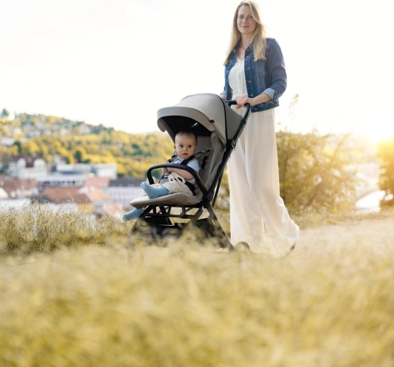 Poussette légère et compacte pour le quotidien alliant design élégant, pilotage d’une seule main et conduite fluide en ville comme sur terrain légèrement irrégulier. Grâce au pliage automatique, à la canopée extensible UPF 50+ et au harnais 5 points avec boucle magnétique, elle offre confort et sécurité de la naissance jusqu’à 22 kg.