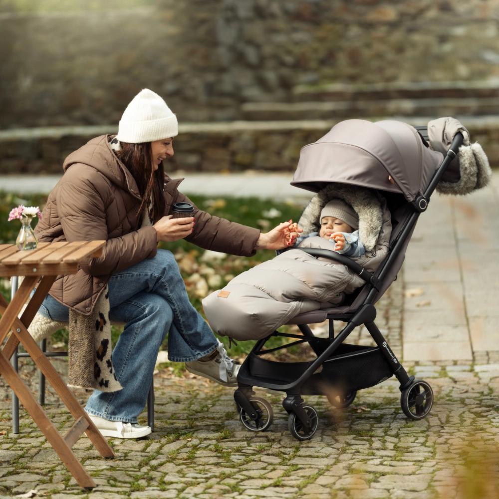 D’un geste fluide, pliez la poussette en un format compact compatible cabine. Idéal quand vous tenez votre enfant ou portez vos courses.