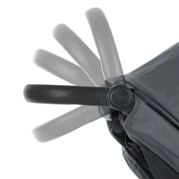 Poignée réglable en hauteur, arceau amovible en similicuir et inclinaison du dossier et des jambes presque à plat pour une sieste paisible.