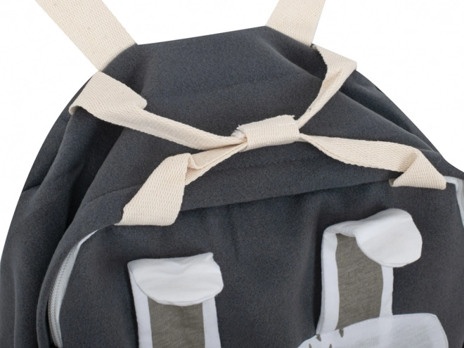 Pour un confort maximal, le sac dispose de bretelles d’épaule réglables et larges qui protègent les épaules des irritations. Il comporte également une anse pour l’accrocher et s’entretient facilement : en cas de salissure, essuyez-le simplement avec un chiffon humide ou lavez-le à l’eau tiède avec une lessive douce. La couleur grise neutre et son design adorable plairont aux enfants comme aux parents.