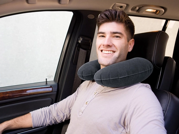 Profitez du confort en déplacement avec le coussin INTEX, léger et compact. Son revêtement floqué (velours) doux au toucher évite de glisser, tandis que sa forme apporte un soutien délicat à la colonne cervicale lorsque vous êtes assis dans l’avion, la voiture ou le train.