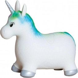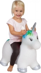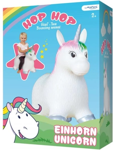 Sautoir HOPHOP licorne en couleur blanche avec une crinière colorée et une queue colorée. Capacité de charge jusqu'à 50 kg. Emballé dans une boîte. Âge recommandé 2+. La dimension du sautoir gonflé est de 52x25x48 cm.