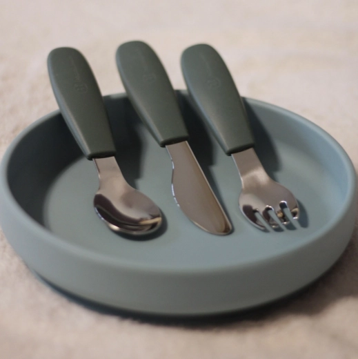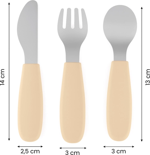 • Set complet 3 pcs : cuillère, fourchette et couteau sécurisé