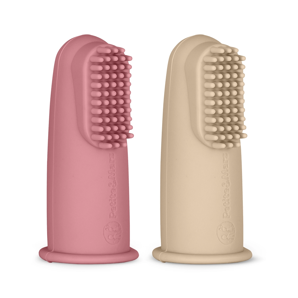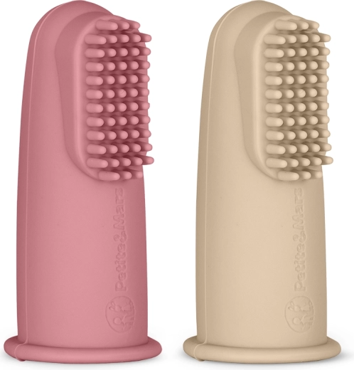Set de brosses à doigt en silicone pour bébés PETITE&MARS, rose et sable, 2 pcs