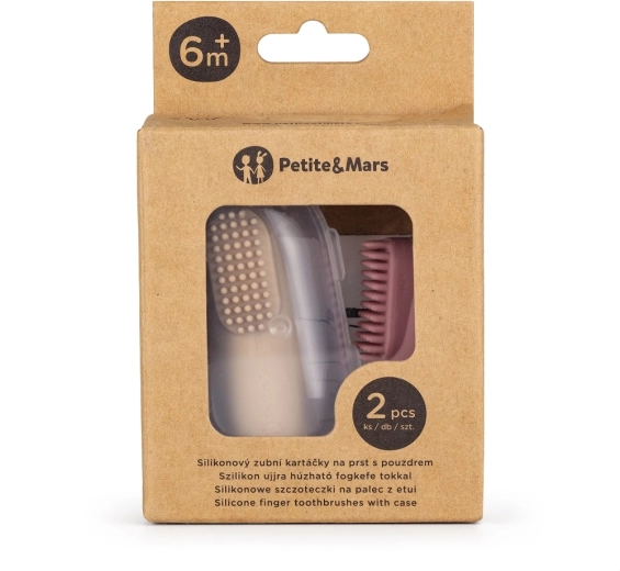 Apprenez de saines habitudes dès les premiers mois avec les brosses à doigt PETITE&MARS. Grâce au silicone alimentaire souple et sans BPA, elles prennent délicatement soin des gencives et des premières dents. La mise en place facile sur le doigt assure un contrôle parfait et un nettoyage sûr, tandis que l’étui pratique garde les brosses hygiéniquement propres à la maison comme en déplacement. Idéales dès 6 mois pour la routine quotidienne et pour apaiser les poussées dentaires.