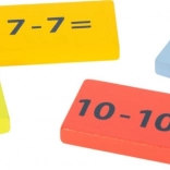 Les enfants s’exercent facilement aux bases de l’arithmétique grâce à une table clairement organisée et à des exercices lisibles sur des pièces en bois.