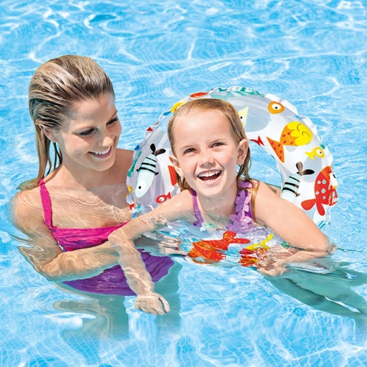 Des imprimés colorés avec des petits poissons et des créatures marines rendent la bouée amusante tout en améliorant la visibilité de l’enfant dans l’eau.