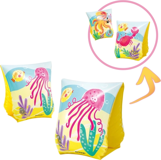 La couleur jaune vive et les motifs marins ludiques améliorent la visibilité de l’enfant dans l’eau, pour que vous le gardiez toujours bien en vue. Les brassards sont faciles à enfiler et, grâce à leur surface antidérapante, restent bien en place sur le bras afin de moins glisser pendant la nage ou les jeux.