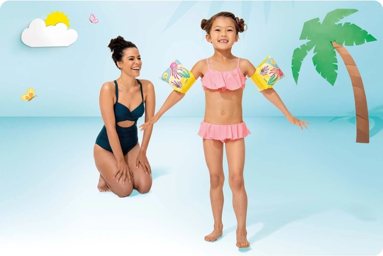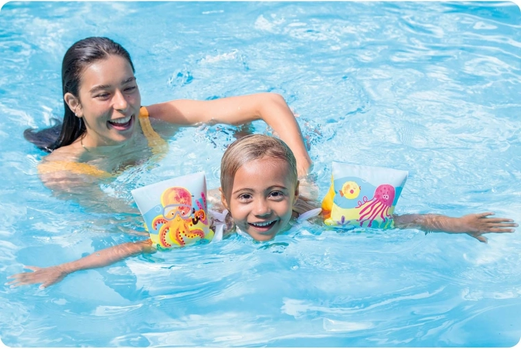 Les brassards gonflables INTEX sont l’accessoire idéal pour les premières expériences dans l’eau. Deux chambres à air indépendantes assurent une sécurité et une stabilité accrues, tandis que le PVC souple mais résistant est agréable au toucher et supporte une utilisation quotidienne à la piscine comme à la mer.