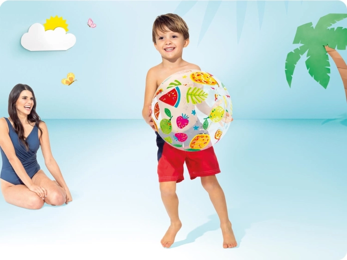 Profitez pleinement de l’été avec le ballon de plage Intex à l’imprimé fruits joyeux. Parfaitement visible sur le sable comme dans l’eau, léger et compact — une fois dégonflé, il prend un minimum de place dans le sac. Le vinyle résistant garantit une longue durée de vie et un jeu sans souci.