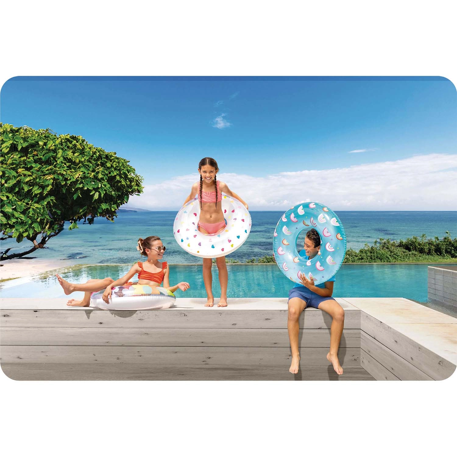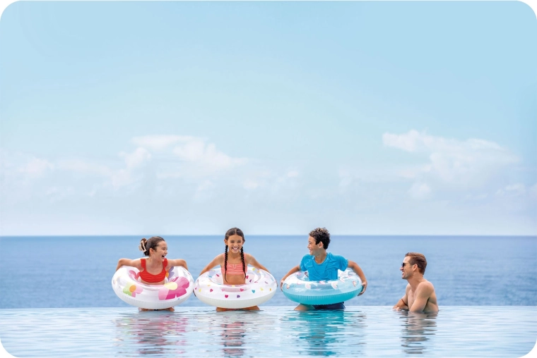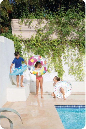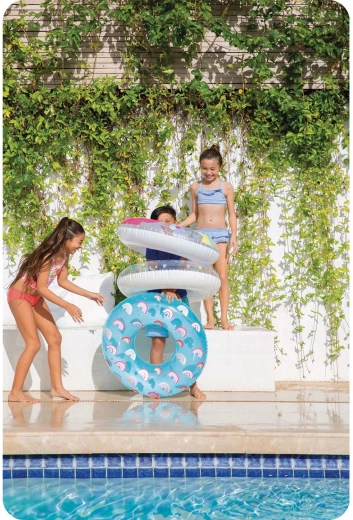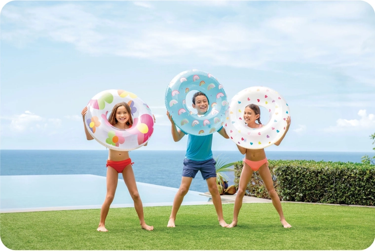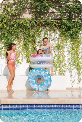 Avec son diamètre de 81 cm et une charge maximale de 40 kg, elle offre une flottabilité stable pour les enfants et les jeunes ados – parfaite pour se détendre et jouer dans l’eau.