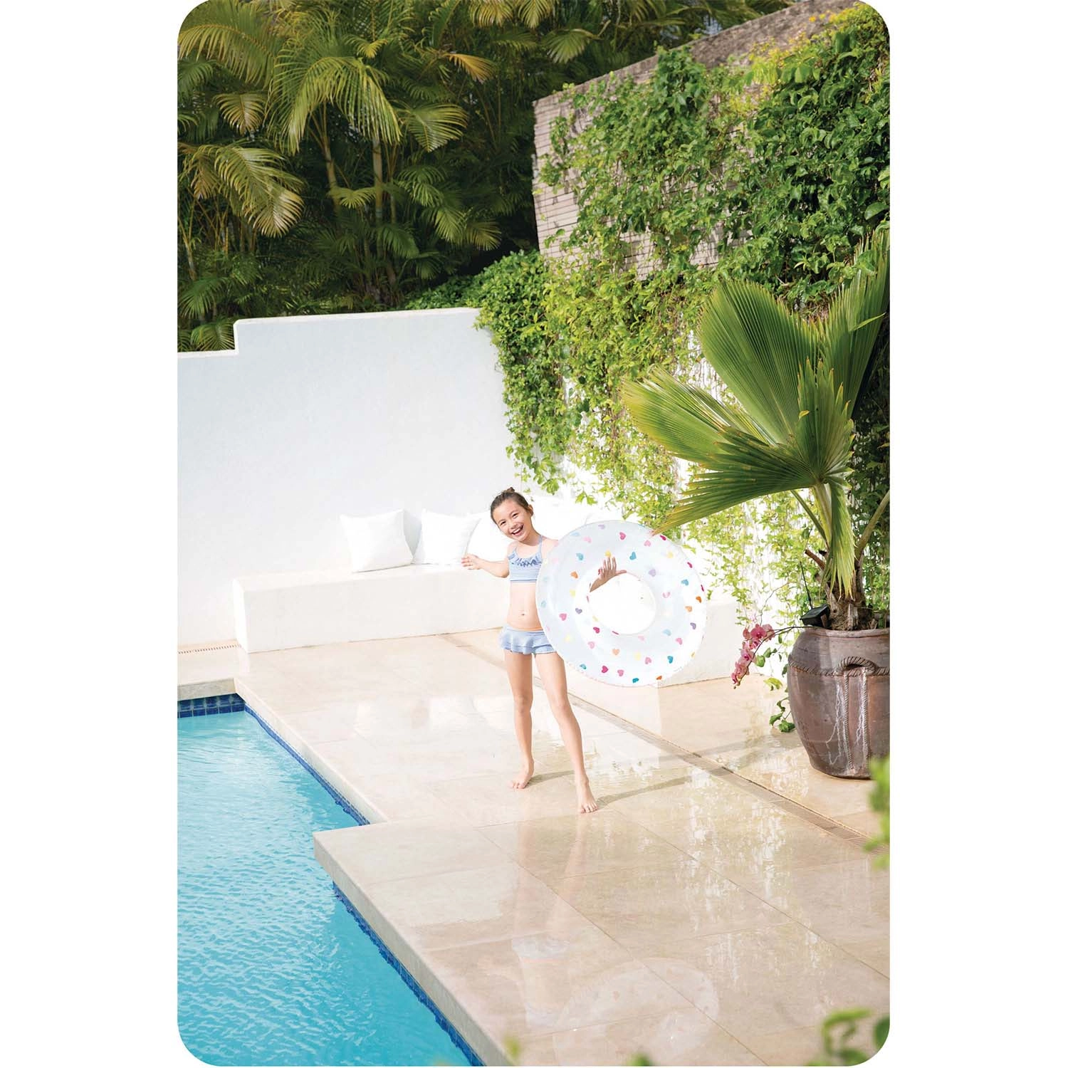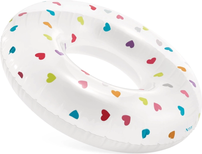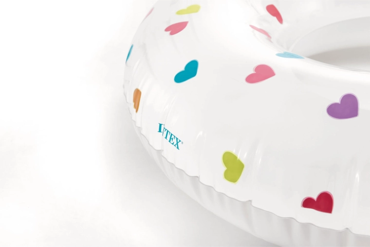 La bouée blanche ornée de cœurs multicolores est voyante et facile à repérer dans la piscine comme en mer – idéale pour s’amuser en toute sécurité et immortaliser de jolis moments d’été.