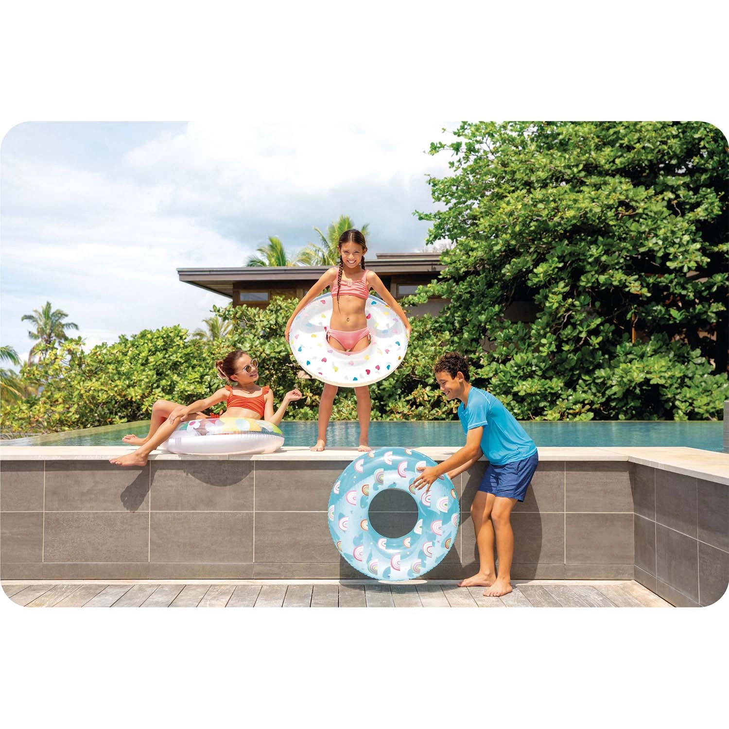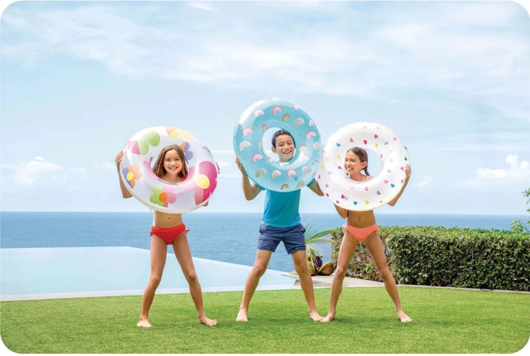 La bouée de natation INTEX au style fleuri et coloré offre beaucoup d’amusement et une détente agréable sur l’eau. La finition transparente et blanche, aux couleurs vives, est très visible et sublime chaque photo d’été. Grâce au PVC de qualité d’une épaisseur de 0,2 mm, la bouée est légère tout en restant résistante aux petites éraflures.