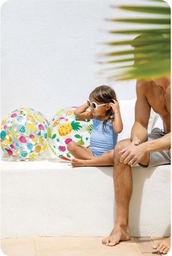 Les panneaux transparents avec un imprimé multicolore plaisent aux enfants comme aux adultes. Le ballon est bien visible dans l’eau et sa structure légère facilite le lancer, la réception et le volleyball de plage. L’emballage comprend une rustine pour une réparation rapide, afin que le plaisir continue même après un petit accroc.