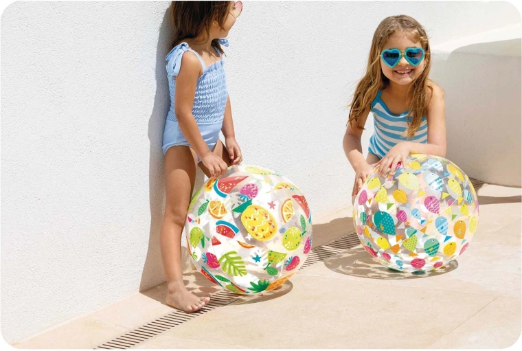 Le ballon transparent avec des poissons colorés est parfaitement visible à la piscine comme sur la plage et donne envie de jouer aux enfants comme aux adultes.