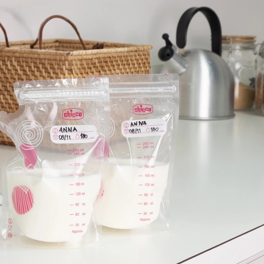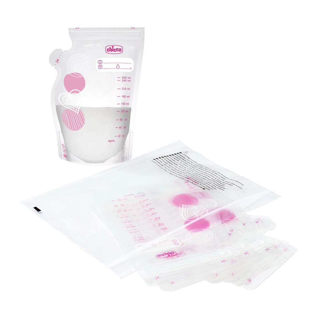 Pratiques et hygiéniques, les sachets pour lait maternel CHICCO d’une capacité de 250 ml sont pré-stérilisés, dotés d’une double fermeture zippée sécurisée anti-fuite, d’un fond autoportant pour un remplissage facile et d’un espace pour les notes (date et quantité). Idéals pour le stockage et la congélation de l’excédent de lait maternel sans perte de ses qualités nutritionnelles.
