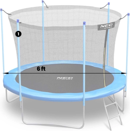 Pièce de rechange : montant supérieur de trampoline pour un diamètre de 183 cm (6 ft) avec filet de protection intérieur, coloris bleu. Idéal pour une réparation rapide de la structure, il assure la stabilité et la sécurité du filet ainsi qu’un montage compatible avec des modèles sélectionnés NEO‑SPORT.
