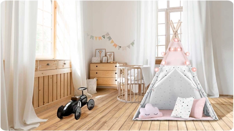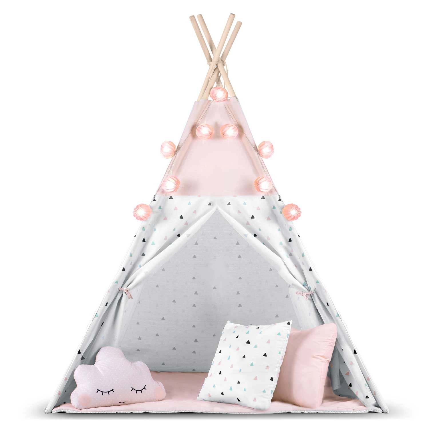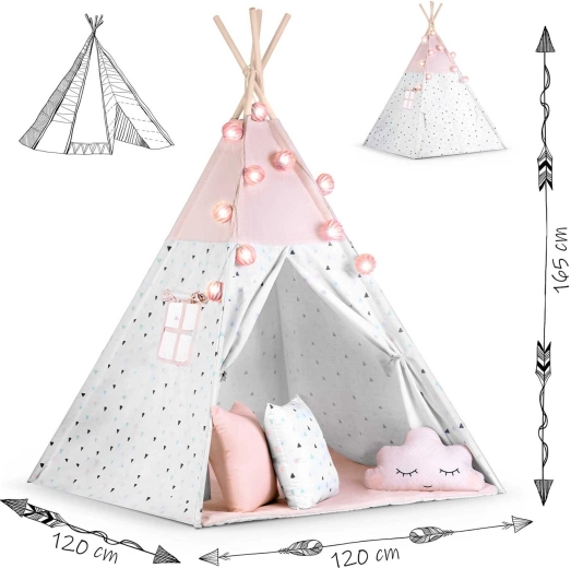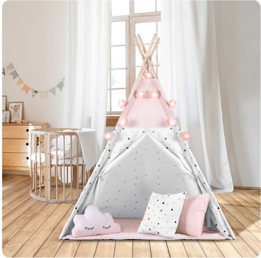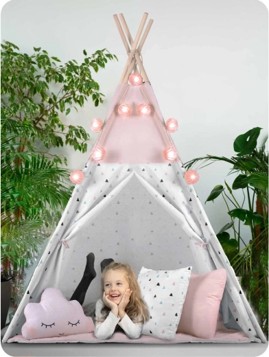 Le tipi pour enfants NUKIDO dans de tendres tons roses est la star des chambres d’enfants. Le coton premium respirant (175 g/m²) est doux, durable et agréable au toucher, tandis que les mâts en bois d’épicéa assurent solidité et longue durée de vie. Grâce au montage rapide et à la structure légère, le tipi se déplace facilement de la chambre à la terrasse ou au jardin.