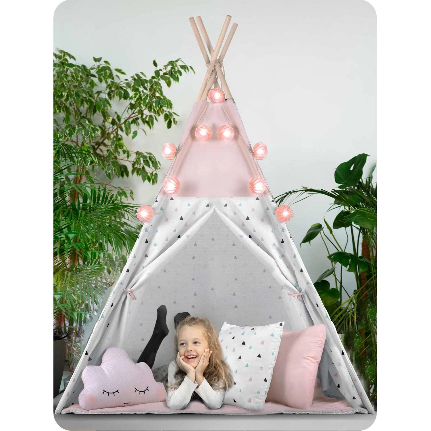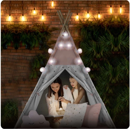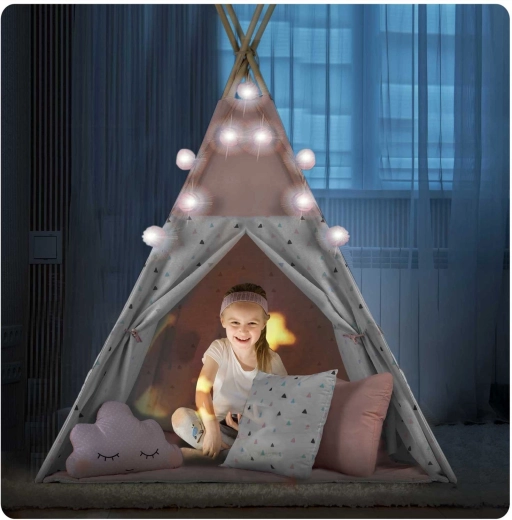 L’emballage comprend 3 coussins décoratifs, un tapis isolant doux et antidérapant, une guirlande, des petites lumières et un sac. Tout ce qu’il faut pour créer rapidement un coin féerique.
