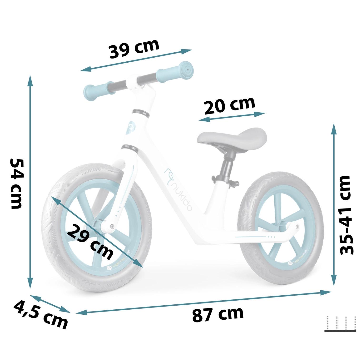 • Selle réglable (35–41 cm) – s’adapte parfaitement à la croissance de l’enfant.