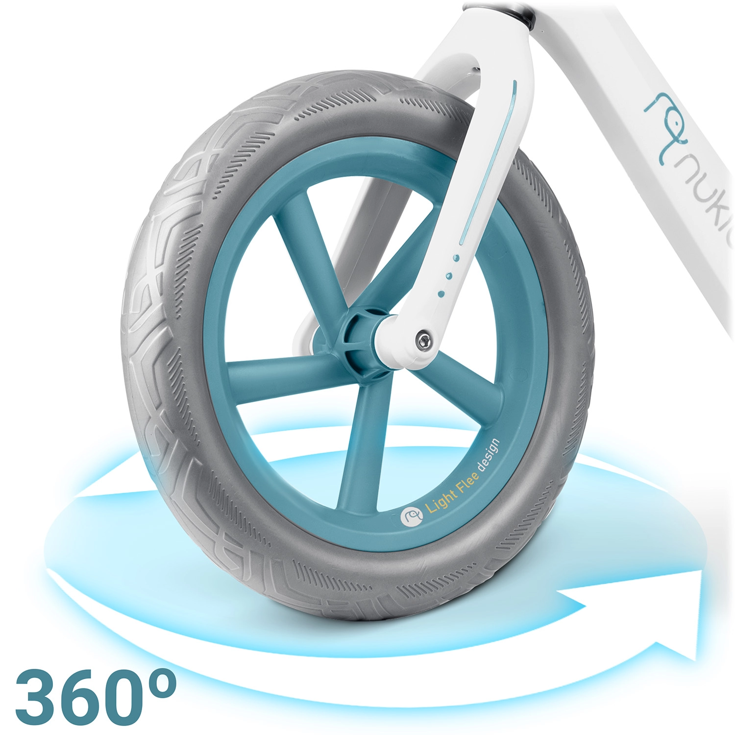 Grandes roues légères et silencieuses offrant stabilité et conduite fluide sans entretien – idéales pour l’asphalte, le parc et l’aire de jeux.