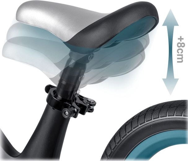 La selle en mousse souple avec réglage de hauteur d’environ 35–41 cm garantit une bonne position et une utilisation prolongée au fil de la croissance de l’enfant.