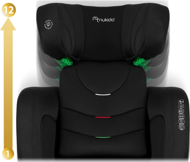 • Évolutif – 12 niveaux d’appui‑tête pour une taille de 100–150 cm