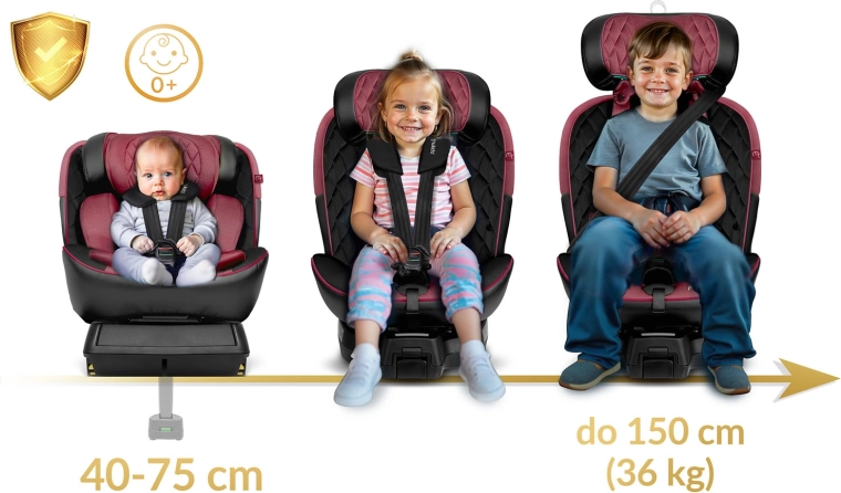 - Plage i‑Size 40–150 cm – un seul siège de la naissance à environ 12 ans.
