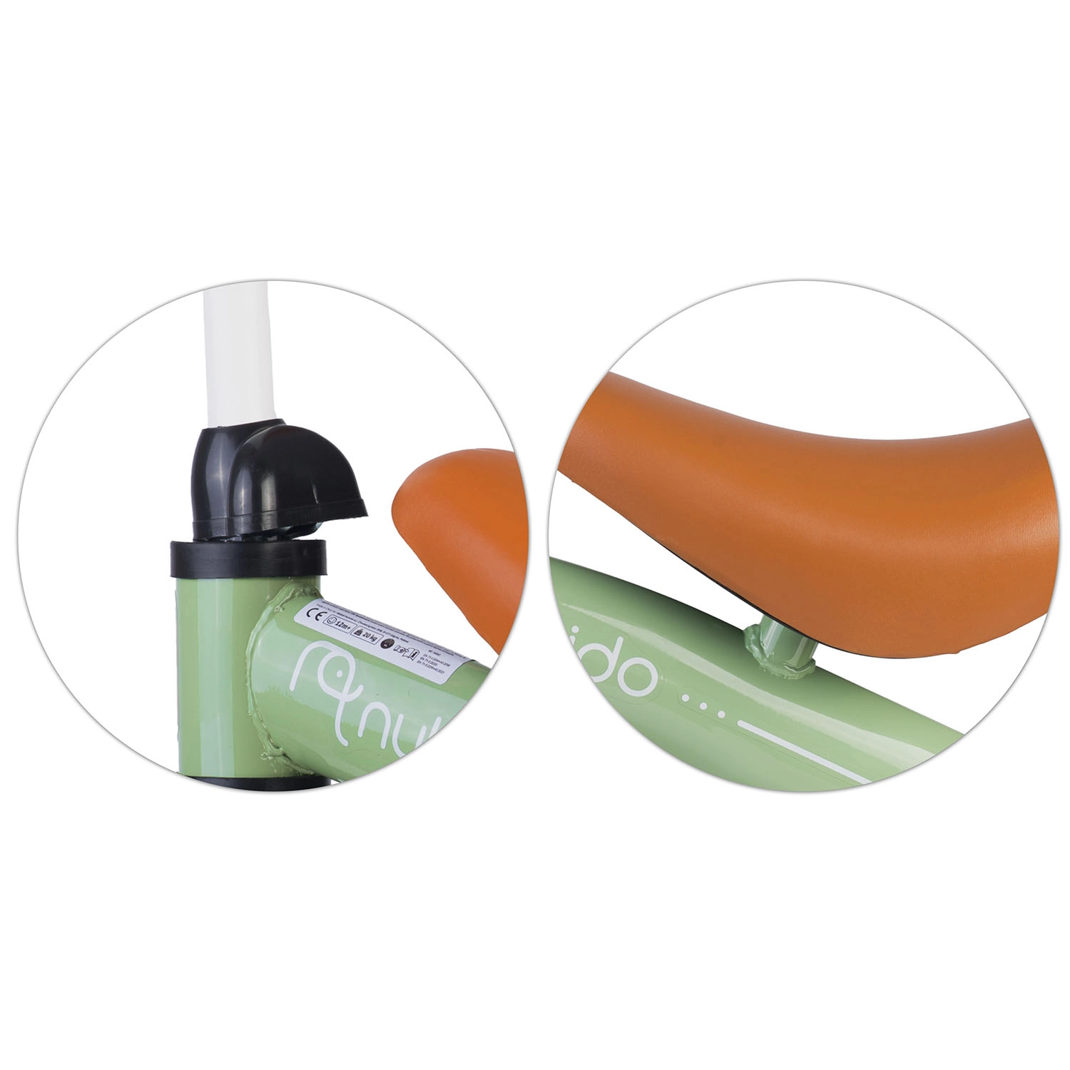 Le réglage facile de la hauteur de selle aide les enfants à s’asseoir de façon ergonomique et améliore le contrôle de la draisienne pendant la conduite.