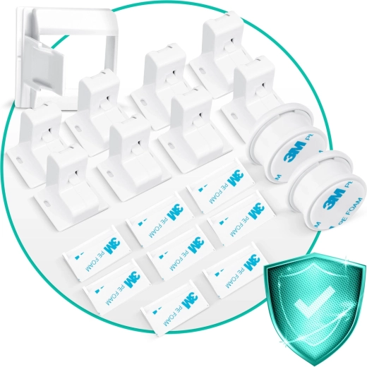 Le design blanc minimaliste et le plastique résistant assurent une longue durée de vie, même en usage quotidien. Les verrous sont silencieux, n’endommagent pas le mobilier et se retirent facilement si nécessaire. Idéal pour les placards de cuisine, les commodes et les tiroirs de salle de bain.
